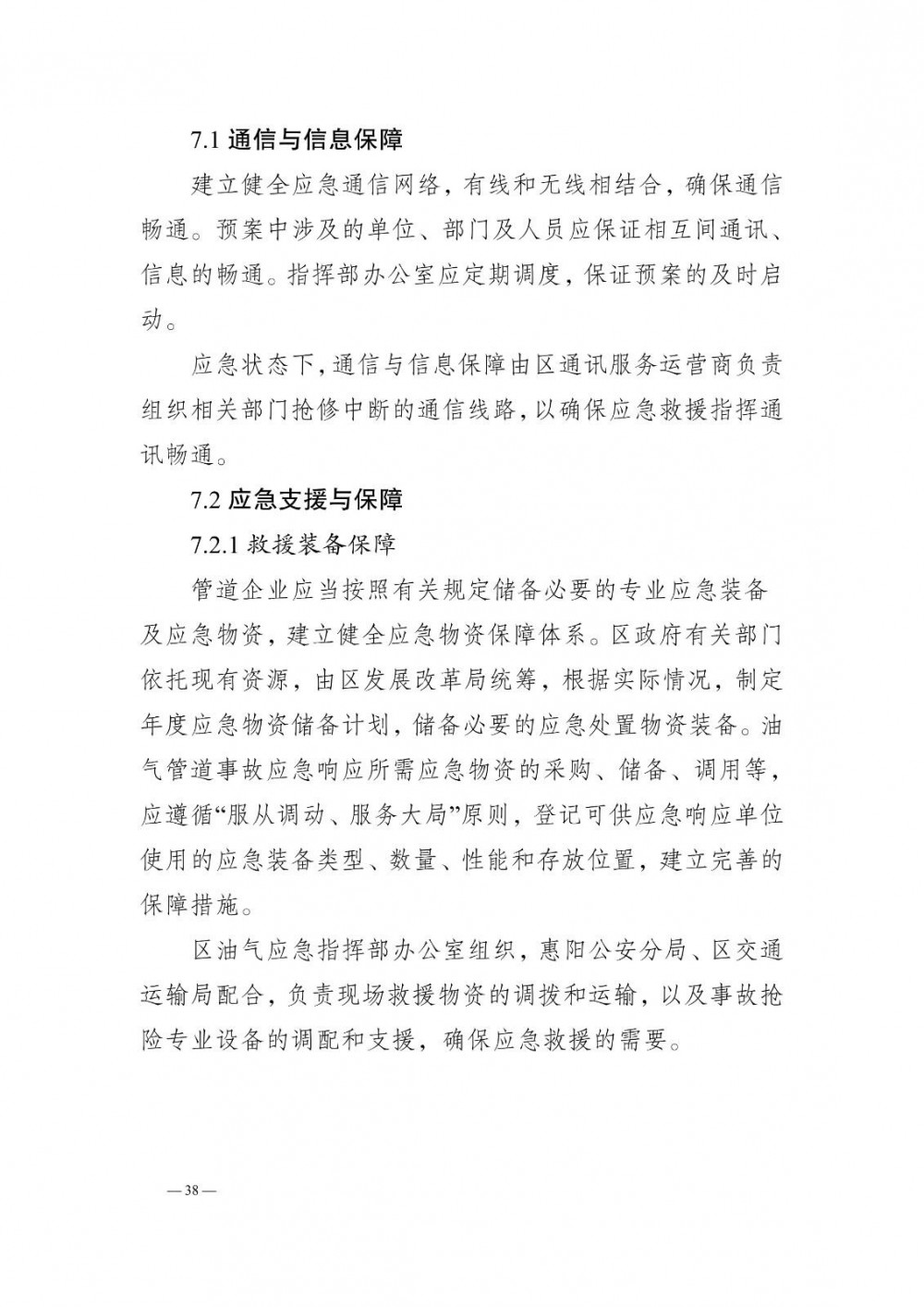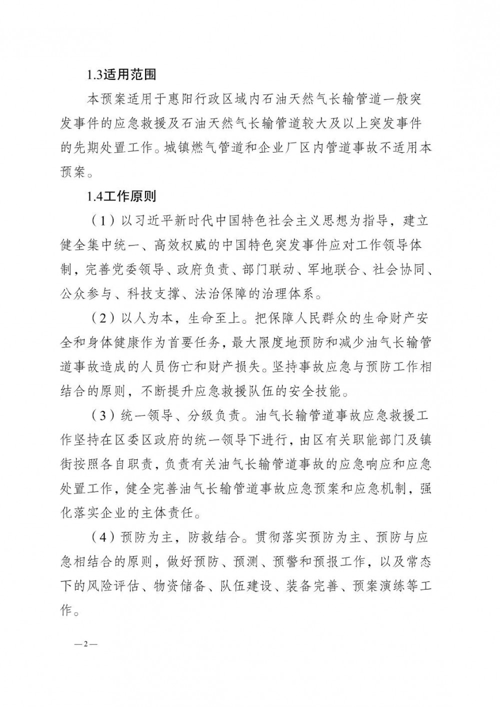 近日,广东省惠州市惠阳区人民政府办公室发布关于印发惠阳区油气长输管道生产安全事故应急预案的通知。其中《预案》由9个章节组成,分别为总则、机构与职责、预防与预警机制、信息报告、应急处置、后期处置、保障措施、监督管理、附则。