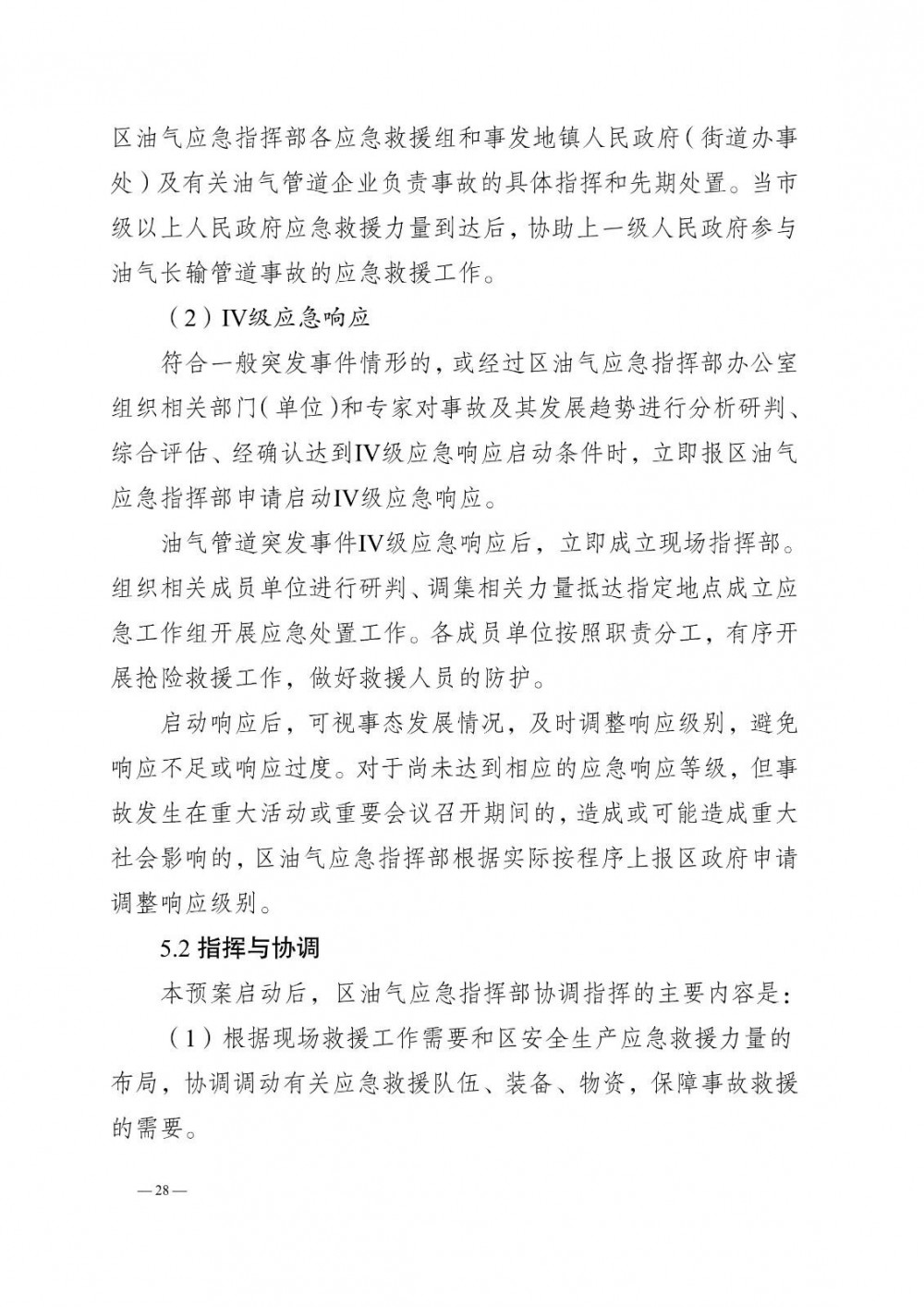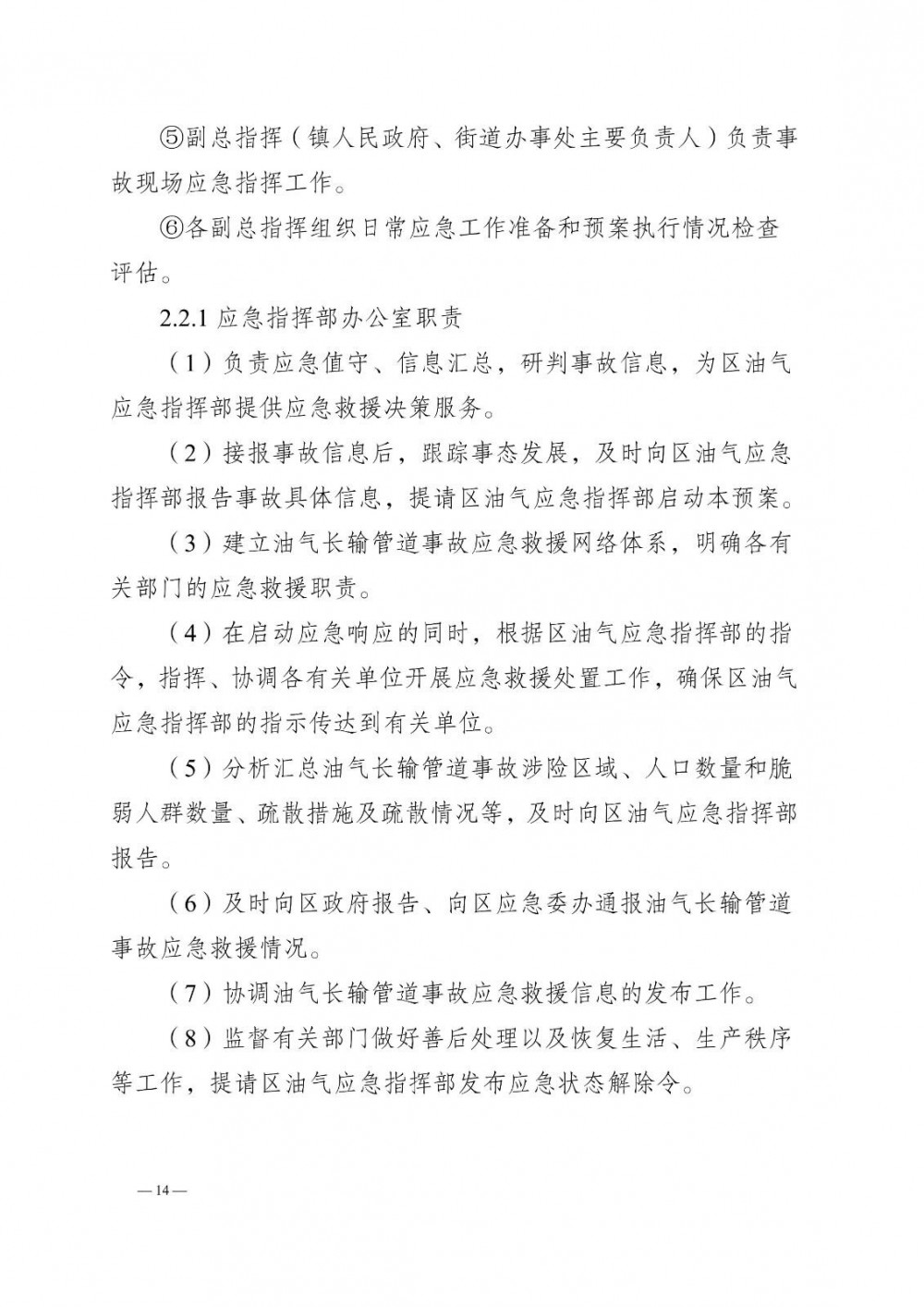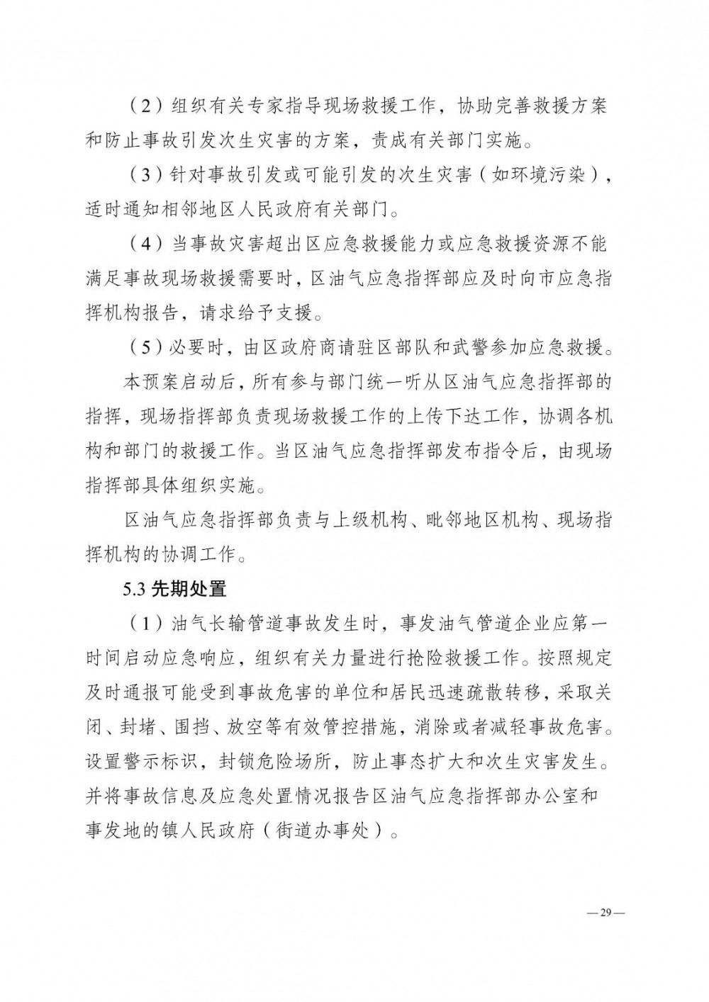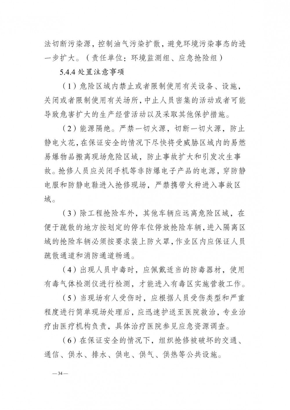 (五)应急处置。对于油气长输管发生事故后的应急响应、指挥与协调、先期处置、现场处置、安全防护、社会力量的动员与参与、信息发布、应急评估、应急结束等不同阶段应急处置程序、步骤与要求进行了详细说明。