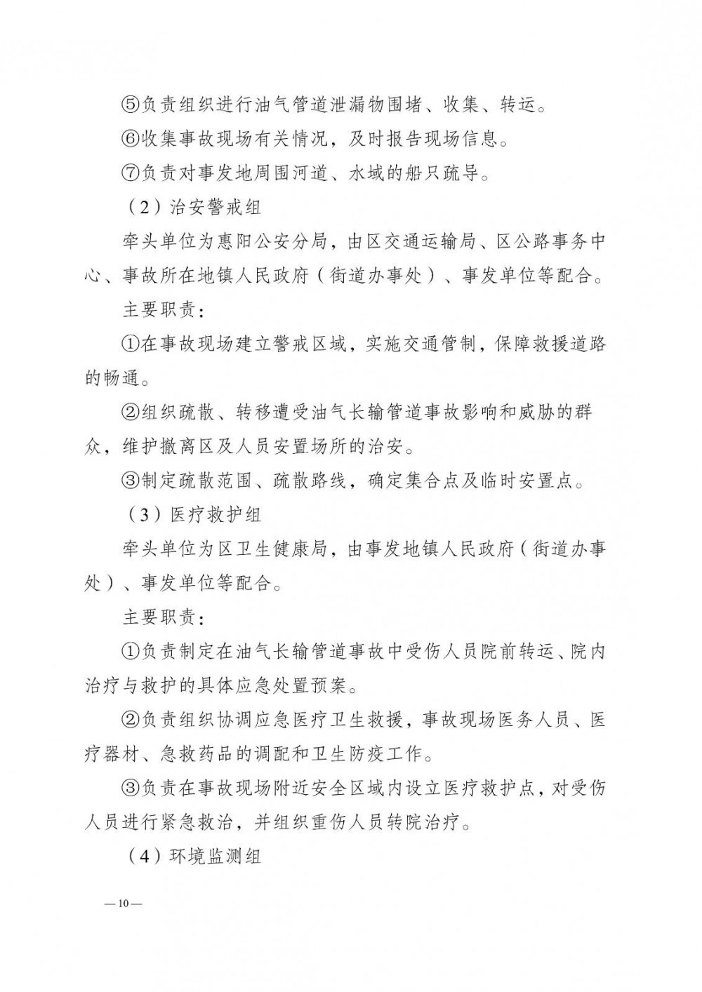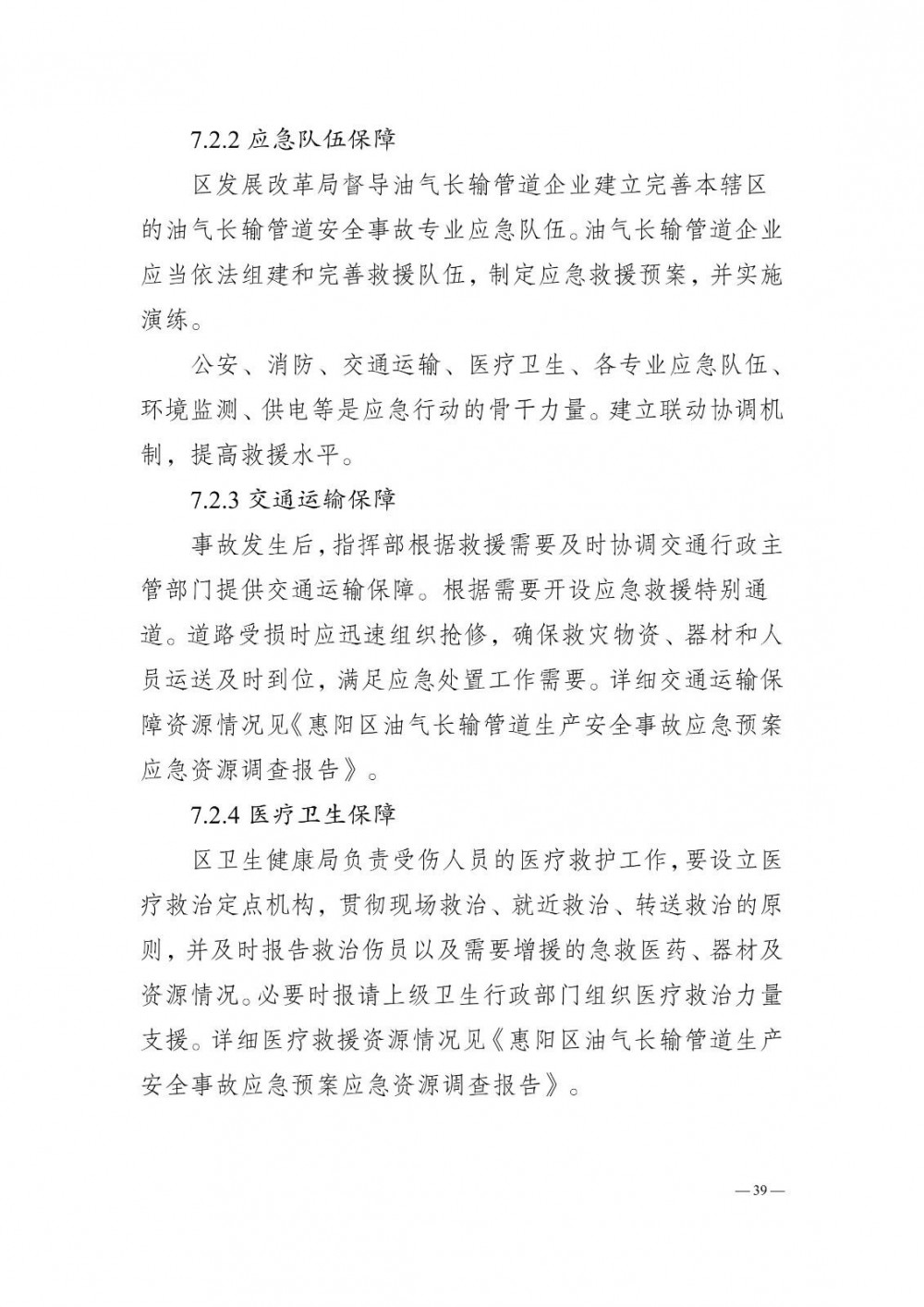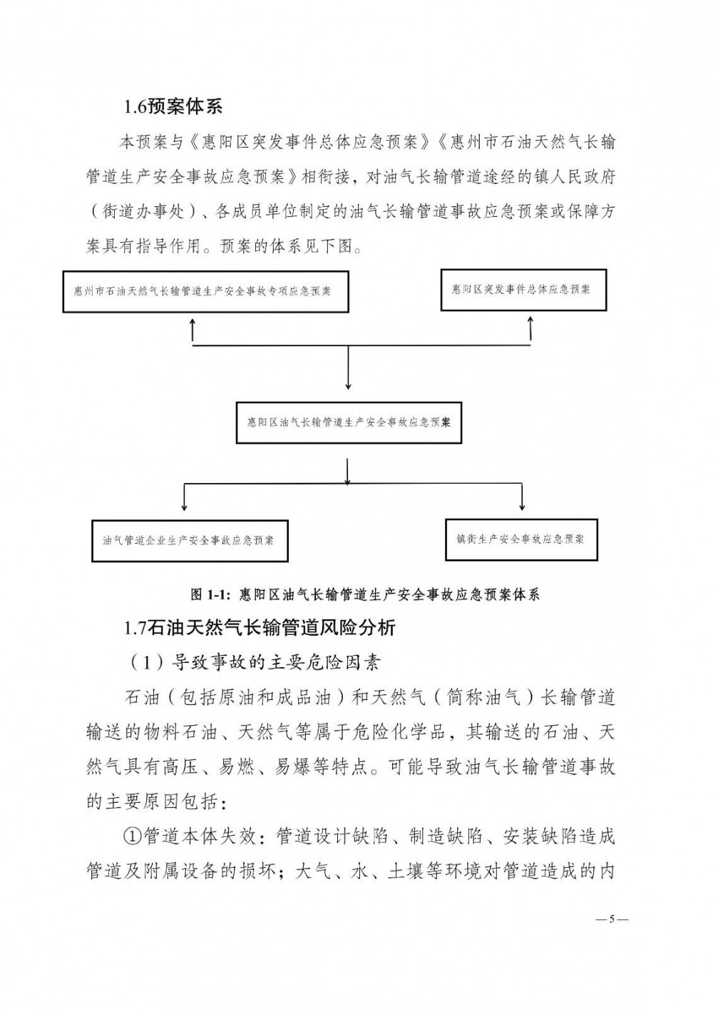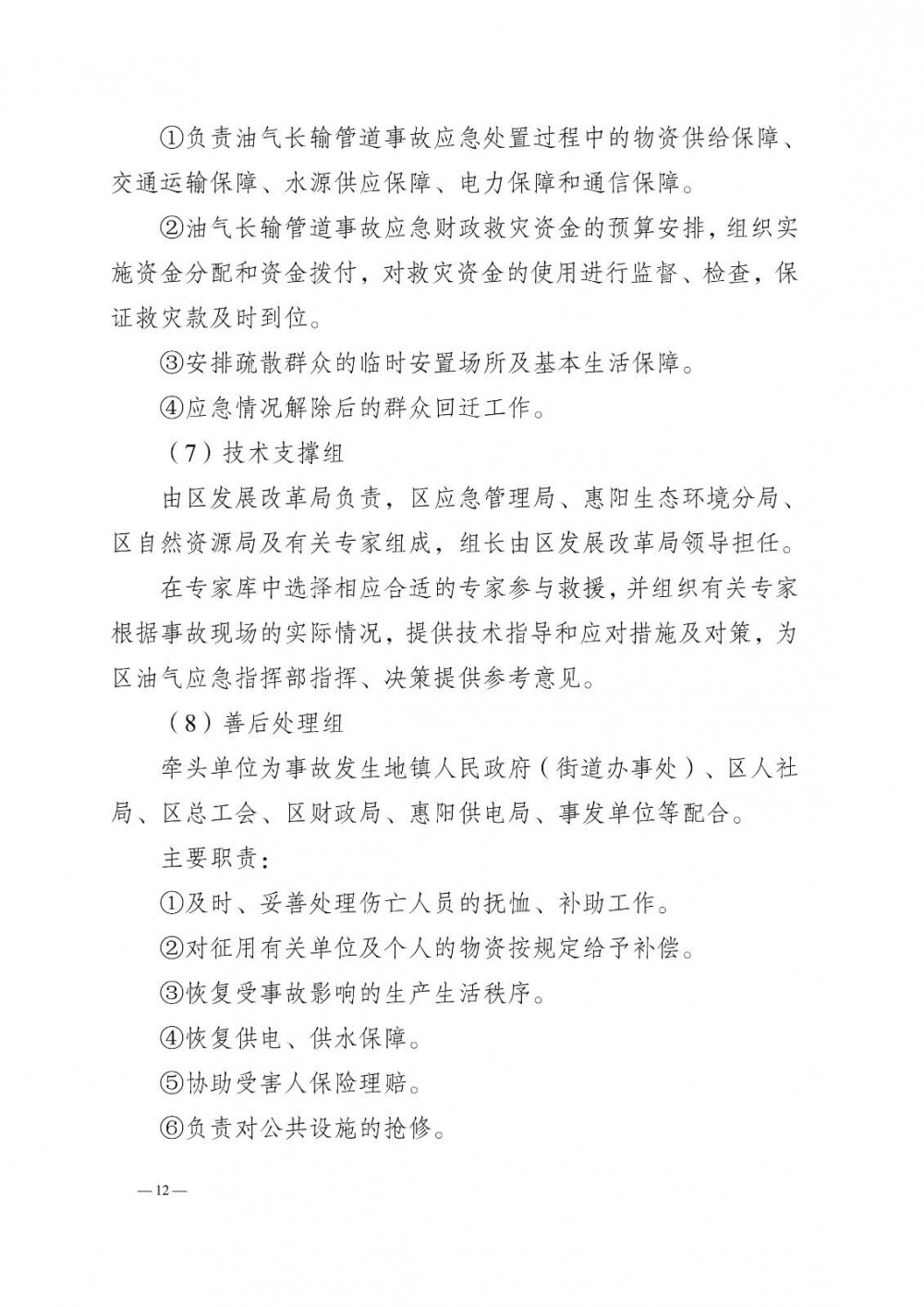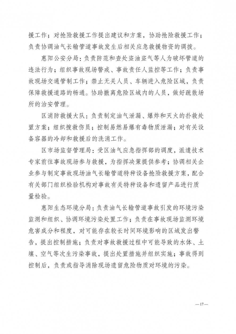 惠州市惠阳区人民政府办公室关于印发惠阳区油气长输管道生产安全事故应急预案的通知