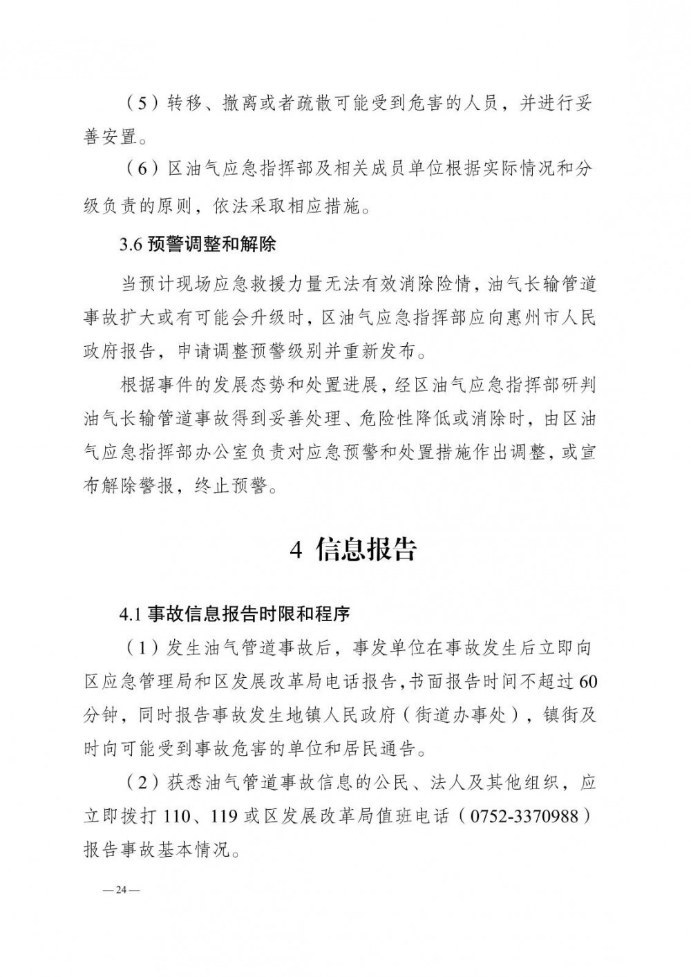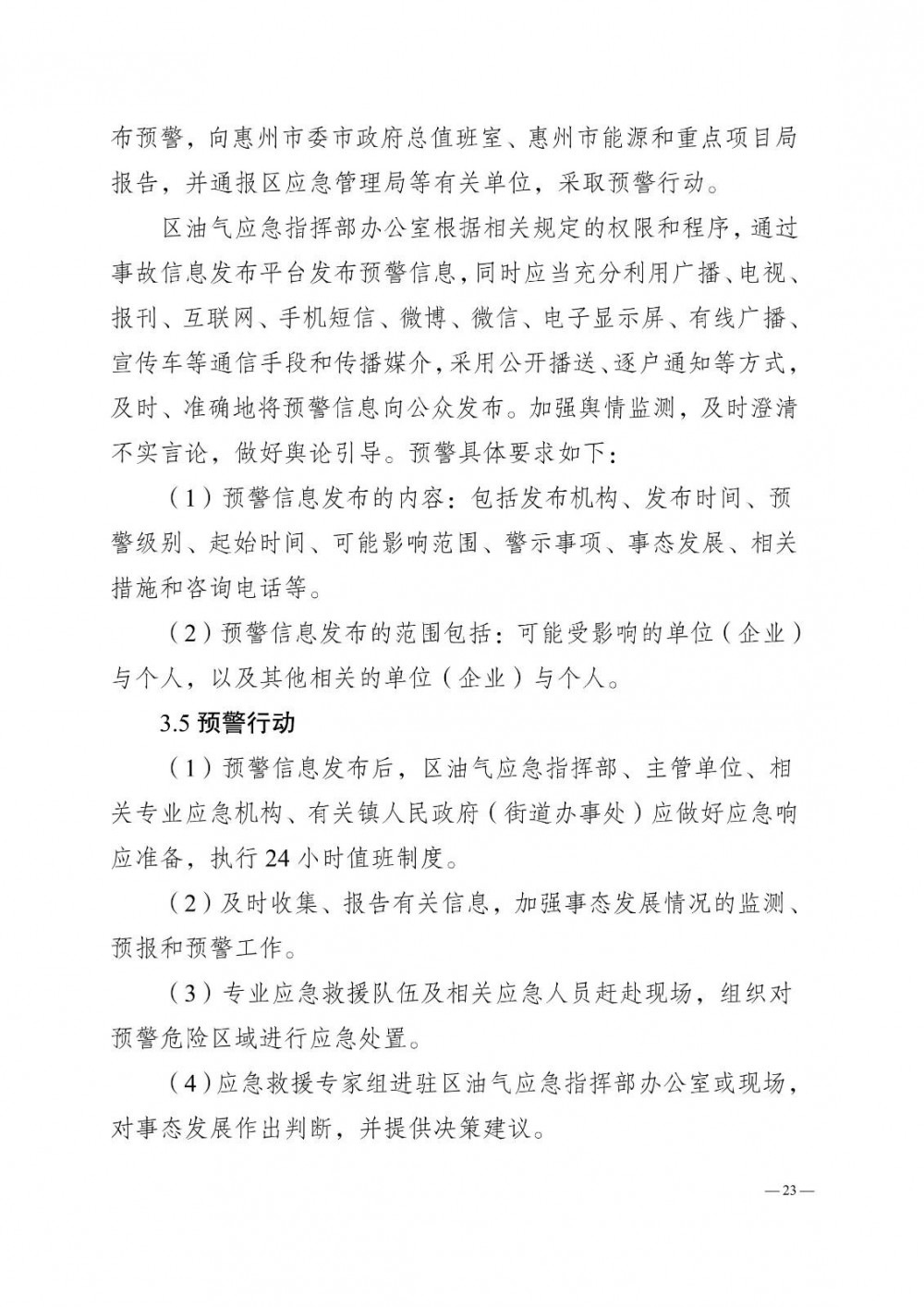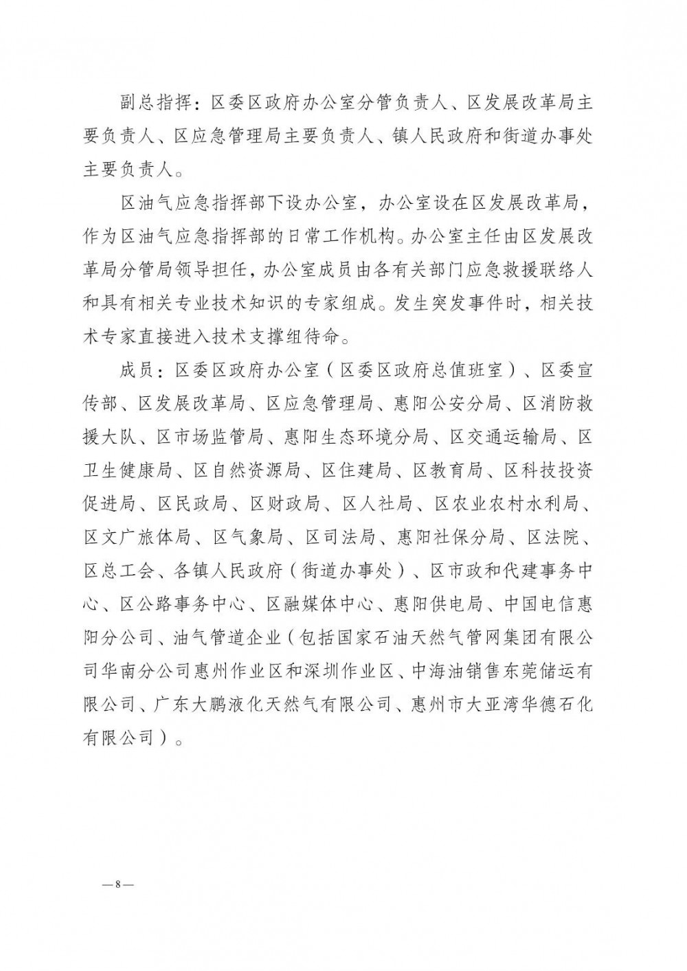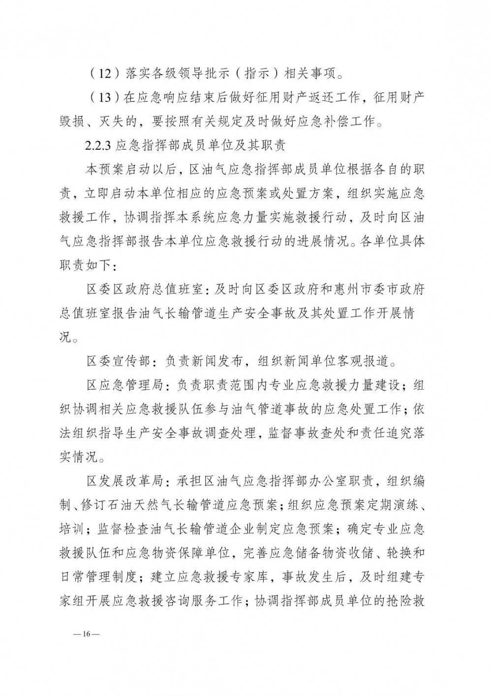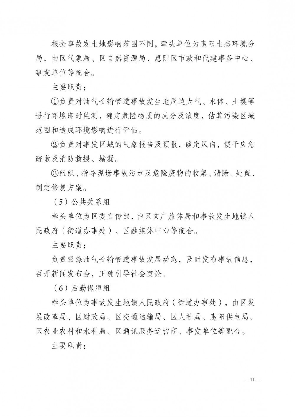 惠州市惠阳区人民政府办公室关于印发惠阳区油气长输管道生产安全事故应急预案的通知
