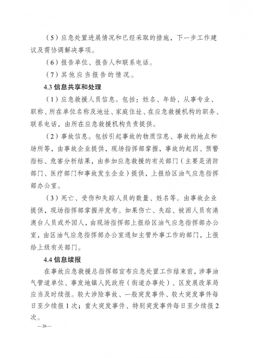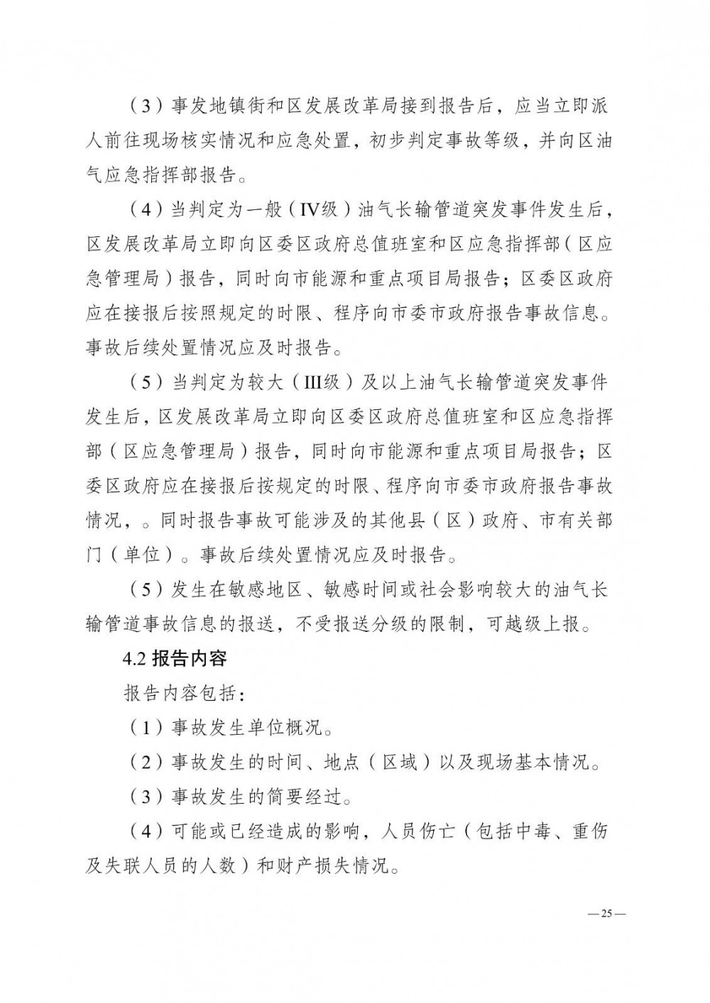 (四)信息报告。对于油气长输管发生事故后的事故信息报告时限和程序、报告内容、信息共享和处理、信息续报等要求进行说明和规定。