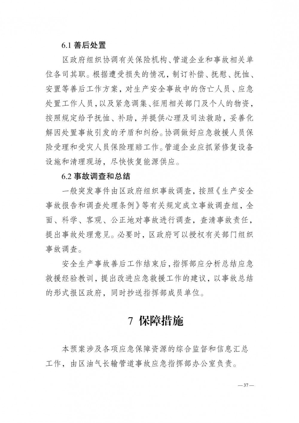 (六)后期处置。对油气长输管发生事故应急结束后的善后处置、事故调查与总结等进行了说明和规定。